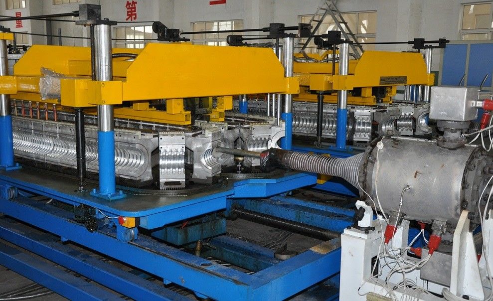 Corrugator ساختار افقی با انتقال نوع زنجیره ای، مجهز به سیستم خنک کننده آب باز و سیستم تشکیل خلاء به کار رفته است. این سرعت تولید را تا حد زیادی افزایش می دهد. تکان دادن تابع خط هزینه های سرمایه گذاری را کاهش می دهد و بازده تولید را بهبود می بخشد. در حال حرکت قالب، سیستم رانندگی مکانیکی بالا و پایین و سیستم پیشرفته خود روانکاری را تصویب می کند. این اطمینان دقت در حرکت و ثبات کیفیت لوله های راه راه را فراهم می کند.