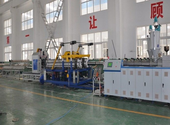 2. این خط لوله PE توسط شارژر مواد + اکسترودر تک پیچ + قالب لوله + مخزن کالیبراسیون خلا + مخزن خنک کننده اسپری x 2 مجموعه + سه دستگاه کشش کاترپیلار + برش بدون گرد و غبار + استکر تشکیل شده است.