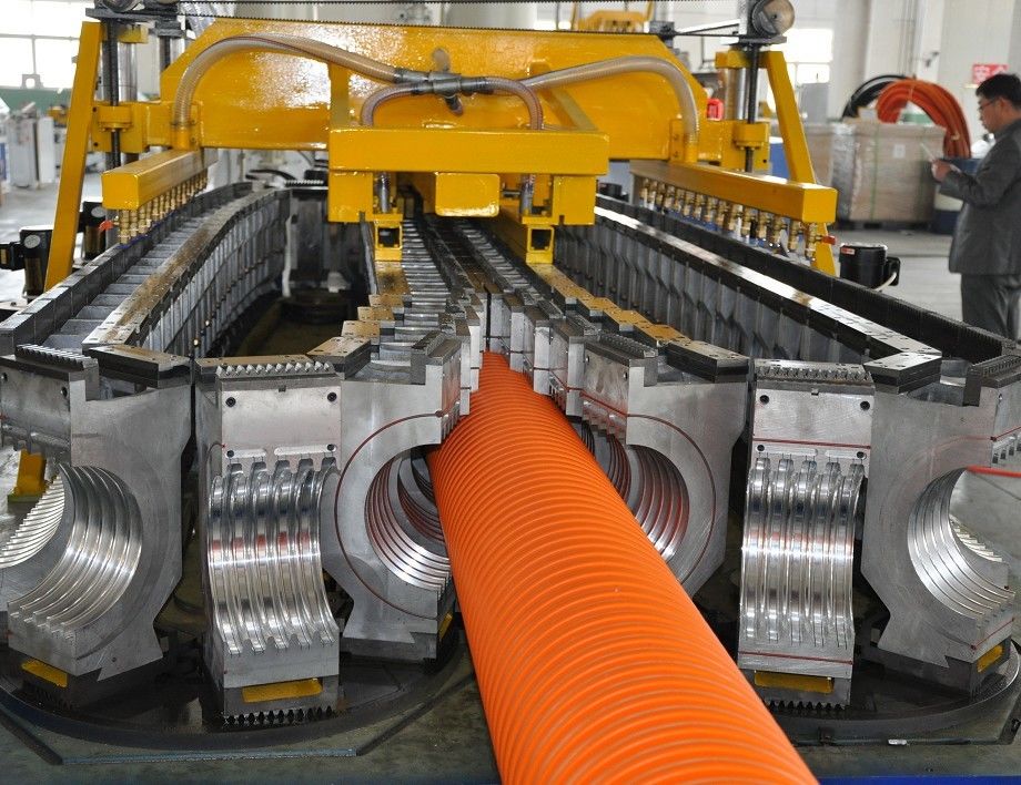 خط لوله راه راه دو جداره SBG250 (ID90mm - 250mm) تصویب می کند دو اکسترودر تک پیچ، ساختار کانال دوتایی، درمان پرداخت نیتریدینگ سر بمیر