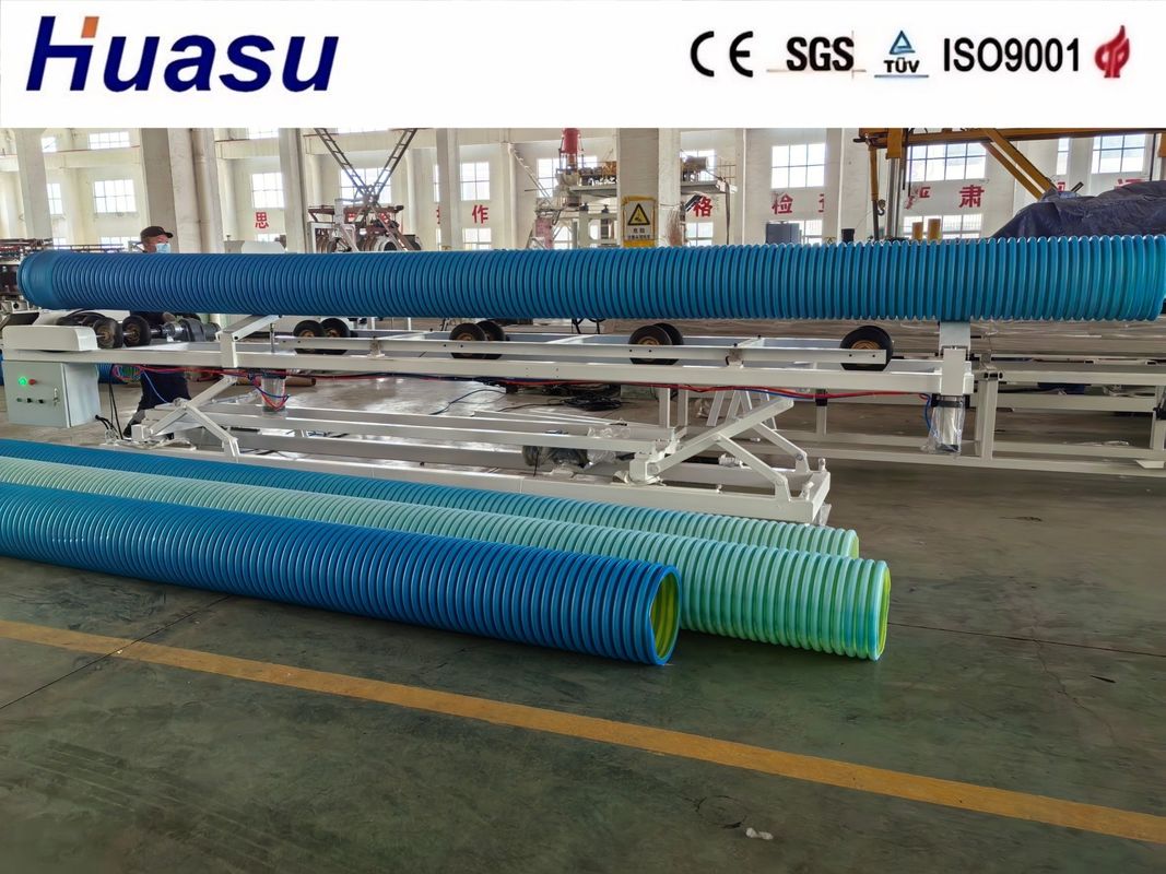 خط لوله دو طرفه ي لوله هاي لوله هاي لوله اي سومين نسل محصولي است که توسط شان دونگ HUASU ساخته شدهبا افزایش سرعت تولید لوله و خروجی اکسترودر تا 20 تا 40 درصد در مقایسه با مدل قبلیاین پیشرفت ها باعث شده است که زنگ زدن آنلاین به صورت یکپارچه تر انجام شود و کیفیت برتر و عملکرد محصولات لوله های موج دار را تضمین کند.