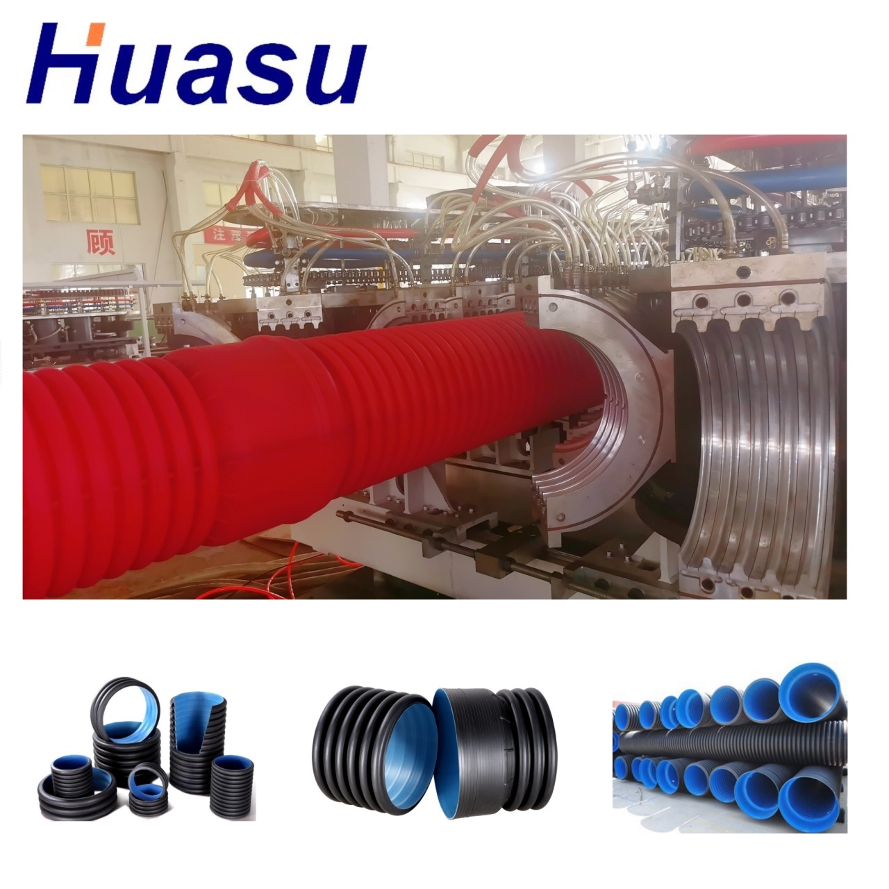 This advanced extrusion line is ideal for producing high-quality HDPE double wall corrugated pipes for various applications including infrastructure projects, drainage systems, and other industrial uses. Its robust construction and precise controls make it suitable for demanding production environments.